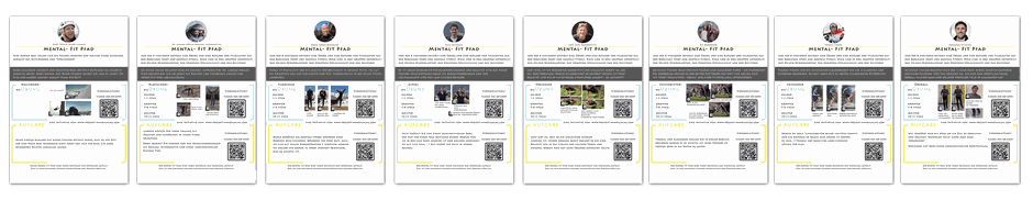 The Mental Fit Path is an interactive movement parcours with 8 stations that playfully promotes mental strength in children and young people. At each station, a simple physical exercise is combined with a personal mental message – shared by athletes and public figures from various areas of society.
